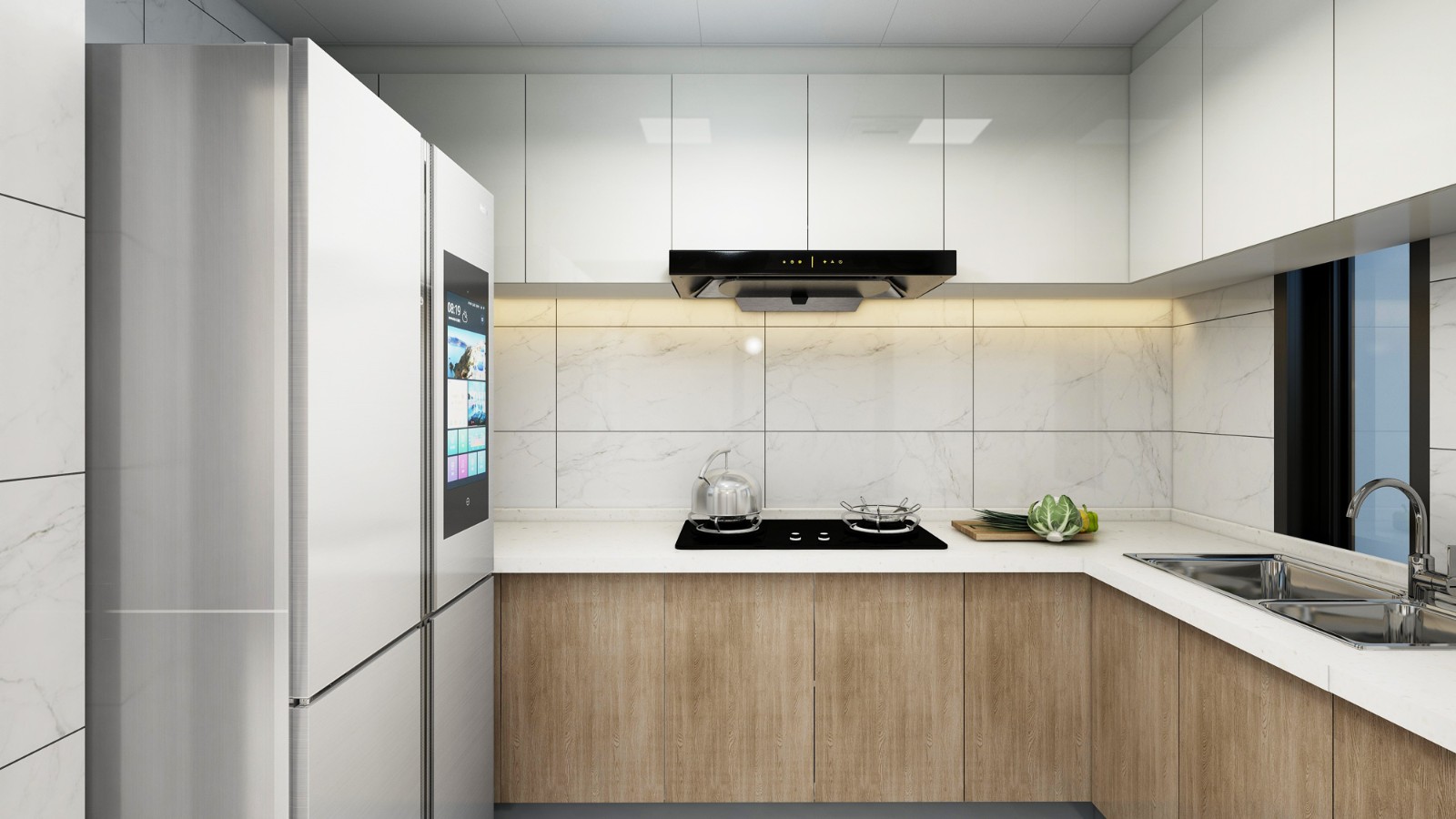 廚房頭頂上的吊柜與櫥柜,足夠的收納空間讓整個(gè)廚房變得十分簡(jiǎn)潔,讓你愛上烹飪。
