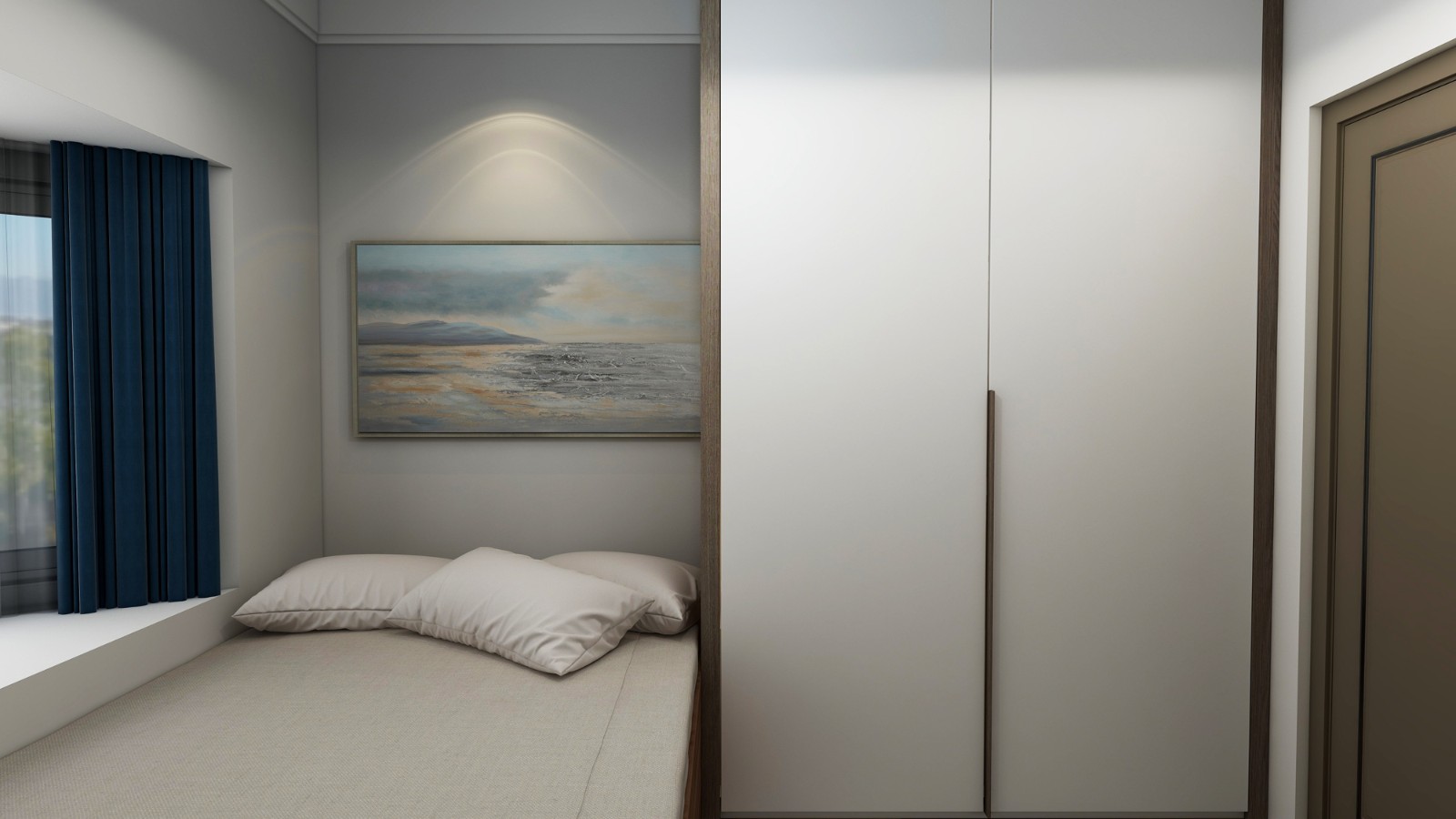 兒童房里設(shè)置有飄窗,擴(kuò)大了室內(nèi)空間,讓衣柜的出現(xiàn)不會(huì)顯得十分擁擠。
