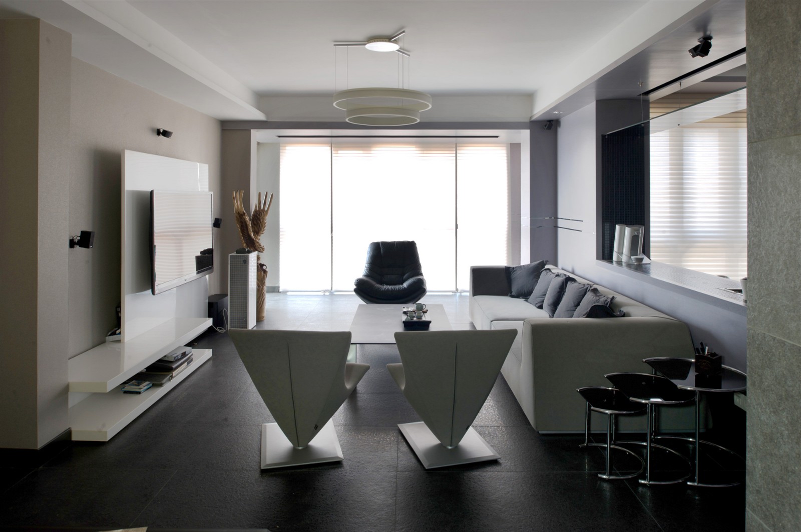 客廳以黑白灰的融合為格調
