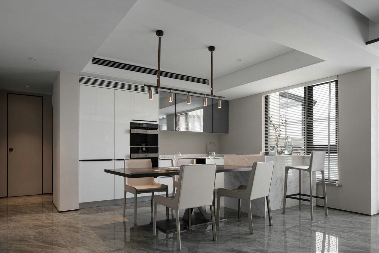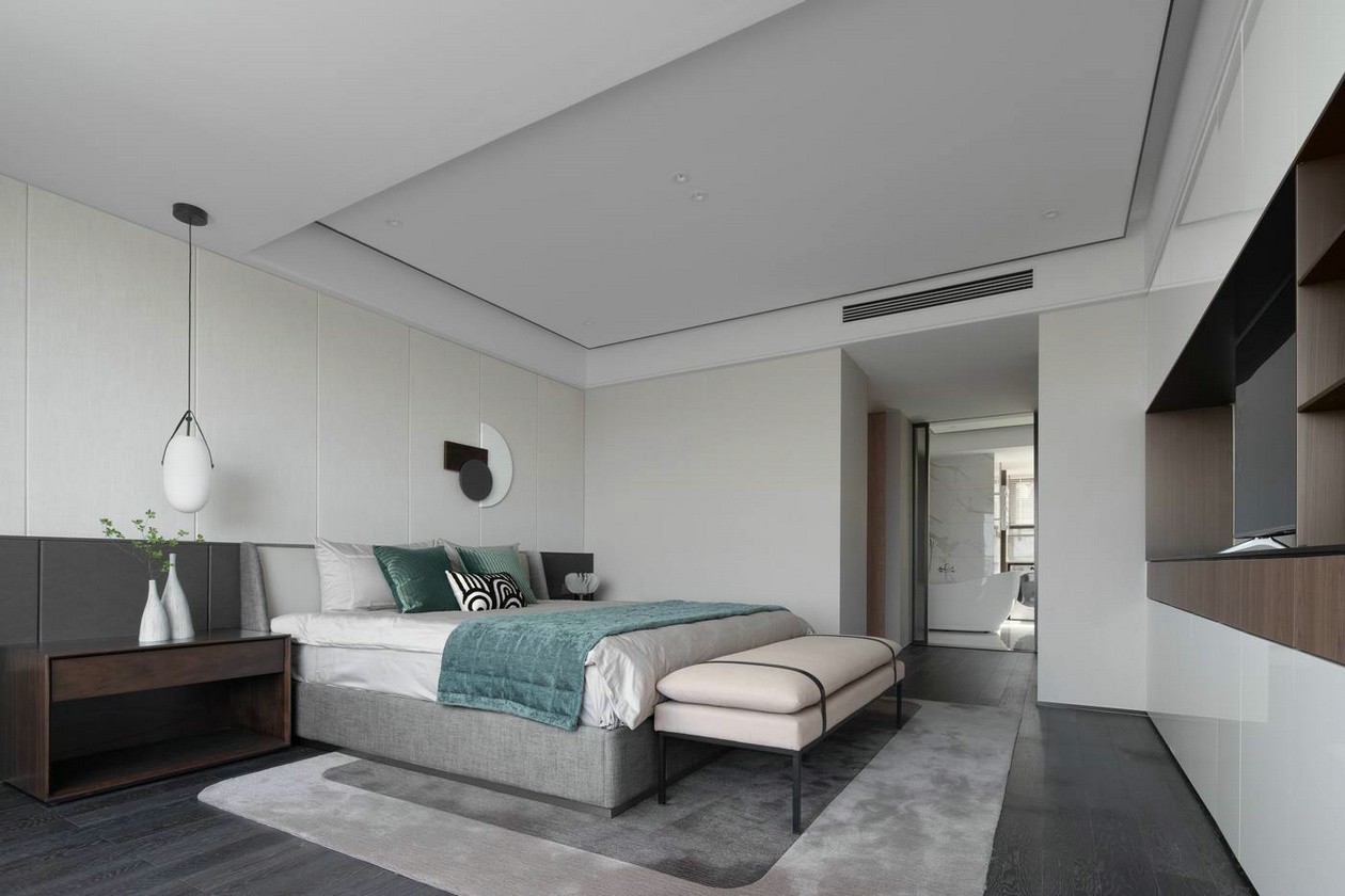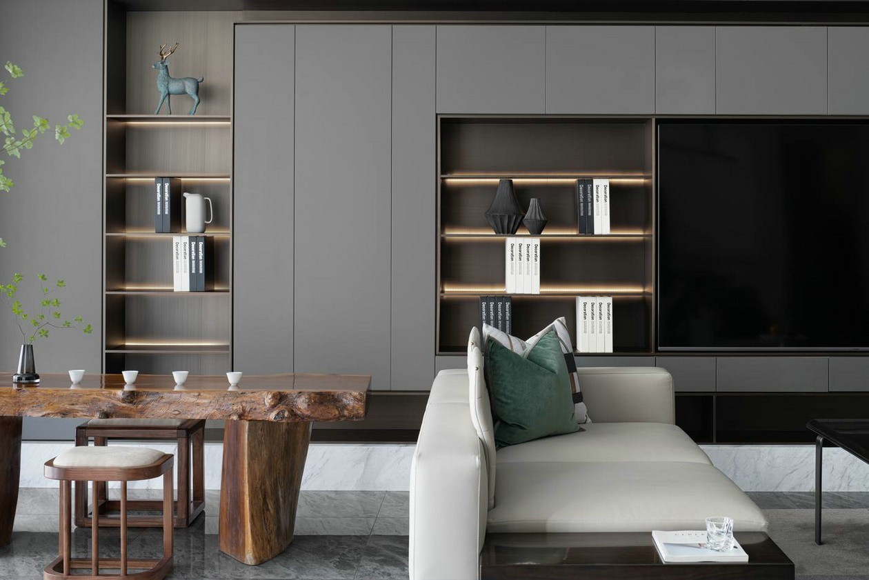 客廳茶室一體結(jié)合的做法,使空間體量有所增加,開闊的空間體驗(yàn)也在無形中影響著業(yè)主的生活模式。